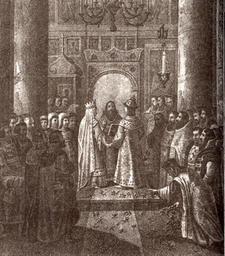 | Keywords: Michael I's wedding by B.Chorikov.jpg Чо иков Б Венчание ца я ихаила Федо овича с Евдокией Лукьяновой из ода Ст ешнёвых http //history sgu ru/ wid 1904 century 1800 Chorikov B PD-old Eudokia Streshneva Royal wedding celebrations in Russia Files uploaded by Shakko from various sources Boris Chorikov Michael I of Russia in engravings |
