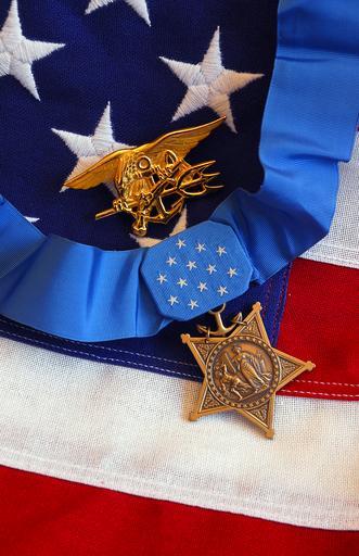 Keywords: Michael P. Murphy Medal of Honor and SEAL Trident.jpg 071002-N-0962S-001 WASHINGTON Oct 2 2007 - The Medal of Honor rests on a flag beside a SEAL trident during preparations for an award ceremony for Lt Michael P Murphy http //www navy mil/management/photodb/photos/071002-N-0962S-001 jpg from http //www navy mil/view_image asp id 51700 2007-10-02 U S Navy photo by Mass Communication Specialist 1st Class Brandan W Schulze RELEASED PD-USGov-Military-Navy Michael P Murphy |
