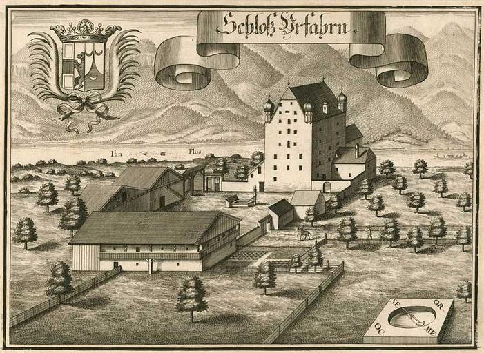Keywords: Michael Wening Schloss Urfahrn.jpg Schloß Urfahrn bei Oberaudorf aus Beschreibung des Churfürsten- und Hertzogthumbs Ober- und Nidern Bayrn http //www steutzger biz/ early 18th century Creator Michael Wening PD-old-100 Schloss Urfahrn Engravings of castles in Bavaria by Michael Wening Urfahrn Images from Antiquariat Steutzger |