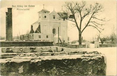 | Keywords: Michališki, Śviranskaja. Міхалішкі, Сьвіранская (1916).jpg іхалішкі Michališki вуліца Сьві анская vulica Śviranskaja Касьцёл Сьвятога іхала А ханёла і кляшта аўгустынаў 1 З калекцыі Ўладзіме а Ліхадзедава <br>2 Jacek Szulski Collection http //www podbrodzie info pl Podbrodzie i okolice - Wirtualna Wileńszczyzna http //www podbrodzie info pl/files/gallery/mini/119 jpg www podbrodzie info pl <br> 3 www delcampe net Author 1916 PD-old-70 History of Michališki Church of Saint Michael the Archangel in Michališki |