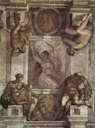 Keywords: Michelangelo Buonarroti 019.jpg Artwork de Deckenfresko zur Schöpfungsgeschichte in der Sixtinischen Kapelle Hauptszene Der Schöpfergott und vier Jünglinge fresco de Rom de Vatikan Sixtinische Kapelle de Auftraggeber Papst Julius II The Yorck Project 10 000 Meisterwerke der Malerei DVD-ROM 2002 ISBN 3936122202 Distributed by DIRECTMEDIA Publishing GmbH 1508-1512 creator Michelangelo Buonarroti http //mail wikipedia org/pipermail/wikide-l/2005-April/012195 html Other versions PD-old-100 PD-Art-YorckProject Sistine Chapel - Michelangelo's frescos unrestored Sistine Chapel ceiling - Separation of Light from Darkness |