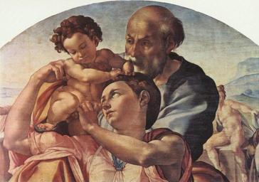 Keywords: Michelangelo Buonarroti 047.jpg Artwork de Hl Familie Tondo Detail oil on wood de Durchmesser 120 cm Florence Institution Uffizi The Yorck Project 10 000 Meisterwerke der Malerei DVD-ROM 2002 ISBN 3936122202 Distributed by DIRECTMEDIA Publishing GmbH 1504-1505 creator Michelangelo Buonarroti http //mail wikipedia org/pipermail/wikide-l/2005-April/012195 html Other versions <gallery> File Michelangelo_Buonarroti_-_Tondo_Doni_-_Google_Art_Project jpg Complete work File Michel-Ange - Tondo Doni jpg Different tones </gallery> PD-old-100 PD-Art-YorckProject Tondo Doni Details of paintings by Michelangelo |