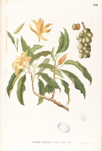 | Keywords: Michelia champaca Blanco1.191-original.png en Plate of flowers and seeds of Magnolia Michelia champaca from Flora de Filipinas Atlas I Flora de Filipinas Gran edicion Atlas I http //www rjb csic es www rjb csic es 1880-1883 Francisco Manuel Blanco O S A PD-old <gallery> File Michelia champaca Blanco1 191 png Cleaned colors adjusted -- png File Michelia champaca Blanco1 191 jpg Cleaned colors adjusted -- jpg File Michelia champaca Blanco1 191-cropped jpg Cleaned colors adjusted cropped </gallery> Magnolia champaca Magnolia fruit and seeds Flora de Filipinas Magnolia botanical illustrations |