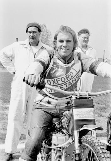 | Keywords: Mick Handley on bike.jpg en Mick Handley English speedway rider Photo Oxford Cheetahs 1977 Own Lawson Speedway 1977 Mick Handley Oxford Cheetahs riders Black and white photographic portraits of speedway racers Black and white photographs of motorcycle racing in the 1970s |