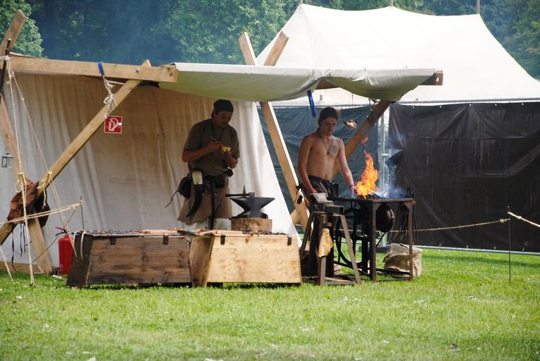 Keywords: middle ages market blacksmith fire tent historically hand labor sale girl stock spektakulum
