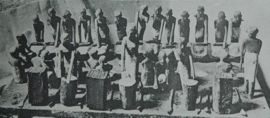 Keywords: MII-model of bakers at work.JPG en Model of bakers at work from the Mortuary Temple of Mentuhotep II at Deir el-Bahari Naville Tomb No 3 excavated by Edouard Naville 1906 today in the British Museum Inv Brit Mus 40915 Henry Edouard Naville The XIth Dynasty Temple at Deir el-Bahari Bd 1 London 1907 Pl IX Henry Edouard Naville 1844-1926 Photo 1907 PD-old Ancient Egyptian servant statuettes Wood carving in Ancient Egypt Works of the 11th dynasty of Egypt Mortuary Temple of Mentuhotep II Henri Édouard Naville Battao bread Egypt Ancient Egyptian Granaries Ž |
