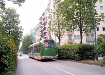 | Keywords: Milano-Cristalis2.jpg A rear view of the Milan Italy Cristalis trolleybus seen in image Milano-Cristalis1 jpg It is operating on a priority carriageway dedicated to emergency vehicles buses taxis and cycles Ordinary traffic uses the carriageways on either side of the hedges Own 2007-06 Spsmiler ATM 400 Hedges in Italy z 2007 in trolleybus transport in Milan June 2007 in Milan Milan trolleybus line 90 | ||||
