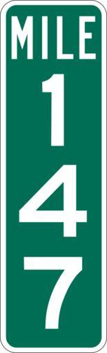 | Keywords: Mile Marker 147.svg PD MUTCD Rfc1394 457 1676 18 60 triple digit mile marker D10-3 Made using Viridian SVG Batcher this file was fabricated by a program 2009-03-05 Paul Robinson Rfc1394 Own work all rights released Public domain D10-3 - Distance Signs-3 Digit |