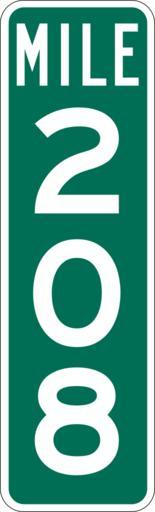Keywords: Mile Marker 208.svg PD MUTCD Rfc1394 457 1676 18 60 triple digit mile marker D10-3 Made using Viridian SVG Batcher this file was fabricated by a program 2009-03-05 Paul Robinson Rfc1394 Own work all rights released Public domain D10-3 - Distance Signs-3 Digit |