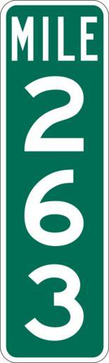 Keywords: Mile Marker 263.svg PD MUTCD Rfc1394 457 1676 18 60 triple digit mile marker D10-3 Made using Viridian SVG Batcher this file was fabricated by a program 2009-03-05 Paul Robinson Rfc1394 Own work all rights released Public domain D10-3 - Distance Signs-3 Digit |