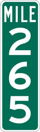| Keywords: Mile Marker 265.svg  PD MUTCD Rfc1394 457 1676 18 60 triple digit mile marker D10-3 Made using Viridian SVG Batcher this file was fabricated by a program 2009-03-05 Paul Robinson Rfc1394 Own work all rights released Public domain D10-3 - Distance Signs-3 Digit |