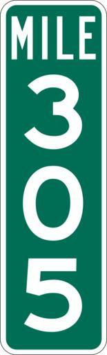 Keywords: Mile Marker 305.svg PD MUTCD Rfc1394 457 1676 18 60 triple digit mile marker D10-3 Made using Viridian SVG Batcher this file was fabricated by a program 2009-03-05 Paul Robinson Rfc1394 Own work all rights released Public domain D10-3 - Distance Signs-3 Digit |