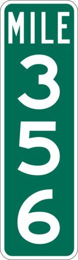 Keywords: Mile Marker 356.svg PD MUTCD Rfc1394 457 1676 18 60 triple digit mile marker D10-3 Made using Viridian SVG Batcher this file was fabricated by a program 2009-03-05 Paul Robinson Rfc1394 Own work all rights released Public domain D10-3 - Distance Signs-3 Digit |