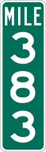 | Keywords: Mile Marker 383.svg  PD MUTCD Rfc1394 457 1676 18 60 triple digit mile marker D10-3 Made using Viridian SVG Batcher this file was fabricated by a program 2009-03-05 Paul Robinson Rfc1394 Own work all rights released Public domain D10-3 - Distance Signs-3 Digit |