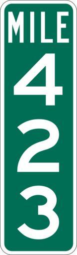 Keywords: Mile Marker 423.svg PD MUTCD Rfc1394 457 1676 18 60 triple digit mile marker D10-3 Made using Viridian SVG Batcher this file was fabricated by a program 2009-03-05 Paul Robinson Rfc1394 Own work all rights released Public domain D10-3 - Distance Signs-3 Digit |