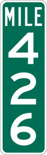 Keywords: Mile Marker 426.svg PD MUTCD Rfc1394 457 1676 18 60 triple digit mile marker D10-3 Made using Viridian SVG Batcher this file was fabricated by a program 2009-03-05 Paul Robinson Rfc1394 Own work all rights released Public domain D10-3 - Distance Signs-3 Digit |