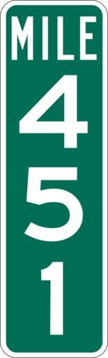 Keywords: Mile Marker 451.svg PD MUTCD Rfc1394 457 1676 18 60 triple digit mile marker D10-3 Made using Viridian SVG Batcher this file was fabricated by a program 2009-03-05 Paul Robinson Rfc1394 Own work all rights released Public domain D10-3 - Distance Signs-3 Digit 451 number |