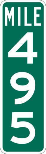 | Keywords: Mile Marker 495.svg  PD MUTCD Rfc1394 457 1676 18 60 triple digit mile marker D10-3 Made using Viridian SVG Batcher this file was fabricated by a program 2009-03-05 Paul Robinson Rfc1394 Own work all rights released Public domain D10-3 - Distance Signs-3 Digit |
