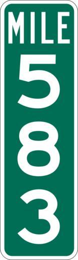 Keywords: Mile Marker 583.svg PD MUTCD Rfc1394 457 1676 18 60 triple digit mile marker D10-3 Made using Viridian SVG Batcher this file was fabricated by a program 2009-03-05 Paul Robinson Rfc1394 Own work all rights released Public domain D10-3 - Distance Signs-3 Digit |
