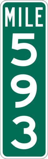 Keywords: Mile Marker 593.svg PD MUTCD Rfc1394 457 1676 18 60 triple digit mile marker D10-3 Made using Viridian SVG Batcher this file was fabricated by a program 2009-03-05 Paul Robinson Rfc1394 Own work all rights released Public domain D10-3 - Distance Signs-3 Digit |