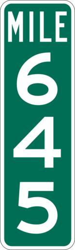 Keywords: Mile Marker 645.svg PD MUTCD Rfc1394 457 1676 18 60 triple digit mile marker D10-3 Made using Viridian SVG Batcher this file was fabricated by a program 2009-03-05 Paul Robinson Rfc1394 Own work all rights released Public domain D10-3 - Distance Signs-3 Digit 645 number |