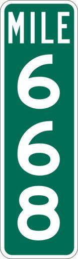 Keywords: Mile Marker 668.svg PD MUTCD Rfc1394 457 1676 18 60 triple digit mile marker D10-3 Made using Viridian SVG Batcher this file was fabricated by a program 2009-03-05 Paul Robinson Rfc1394 Own work all rights released Public domain D10-3 - Distance Signs-3 Digit |