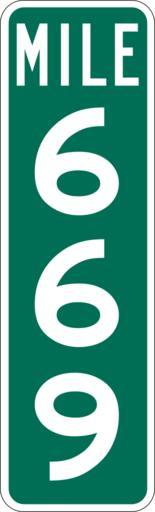 MAKE A MEME View Large Image Mile Marker 669.svg PD MUTCD Rfc1394 457 1676 18 60 triple digit mile marker D10-3 Made using Viridian SVG Batcher this file was fabricated by a program 2009-03-05 Paul Robinson Rfc1394 Own work all rights released Public domain D10-3 - ...