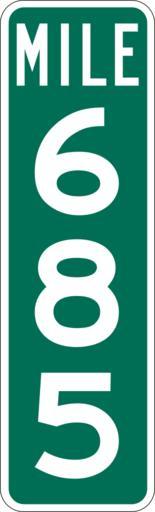 Keywords: Mile Marker 685.svg PD MUTCD Rfc1394 457 1676 18 60 triple digit mile marker D10-3 Made using Viridian SVG Batcher this file was fabricated by a program 2009-03-05 Paul Robinson Rfc1394 Own work all rights released Public domain D10-3 - Distance Signs-3 Digit |