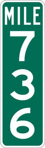 Keywords: Mile Marker 736.svg PD MUTCD Rfc1394 457 1676 18 60 triple digit mile marker D10-3 Made using Viridian SVG Batcher this file was fabricated by a program 2009-03-05 Paul Robinson Rfc1394 Own work all rights released Public domain D10-3 - Distance Signs-3 Digit |