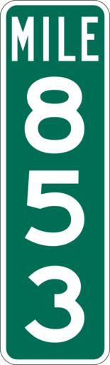Keywords: Mile Marker 853.svg PD MUTCD Rfc1394 457 1676 18 60 triple digit mile marker D10-3 Made using Viridian SVG Batcher this file was fabricated by a program 2009-03-05 Paul Robinson Rfc1394 Own work all rights released Public domain D10-3 - Distance Signs-3 Digit |