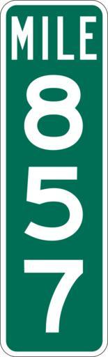 Keywords: Mile Marker 857.svg PD MUTCD Rfc1394 457 1676 18 60 triple digit mile marker D10-3 Made using Viridian SVG Batcher this file was fabricated by a program 2009-03-05 Paul Robinson Rfc1394 Own work all rights released Public domain D10-3 - Distance Signs-3 Digit |