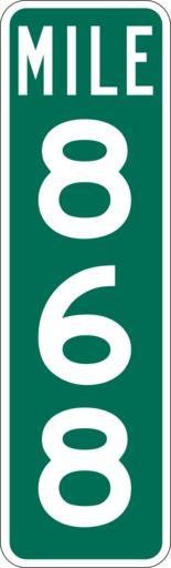 Keywords: Mile Marker 868.svg PD MUTCD Rfc1394 457 1676 18 60 triple digit mile marker D10-3 Made using Viridian SVG Batcher this file was fabricated by a program 2009-03-05 Paul Robinson Rfc1394 Own work all rights released Public domain D10-3 - Distance Signs-3 Digit |