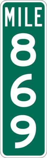 Keywords: Mile Marker 869.svg PD MUTCD Rfc1394 457 1676 18 60 triple digit mile marker D10-3 Made using Viridian SVG Batcher this file was fabricated by a program 2009-03-05 Paul Robinson Rfc1394 Own work all rights released Public domain D10-3 - Distance Signs-3 Digit |