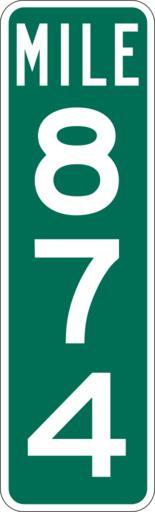 Keywords: Mile Marker 874.svg PD MUTCD Rfc1394 457 1676 18 60 triple digit mile marker D10-3 Made using Viridian SVG Batcher this file was fabricated by a program 2009-03-05 Paul Robinson Rfc1394 Own work all rights released Public domain D10-3 - Distance Signs-3 Digit |