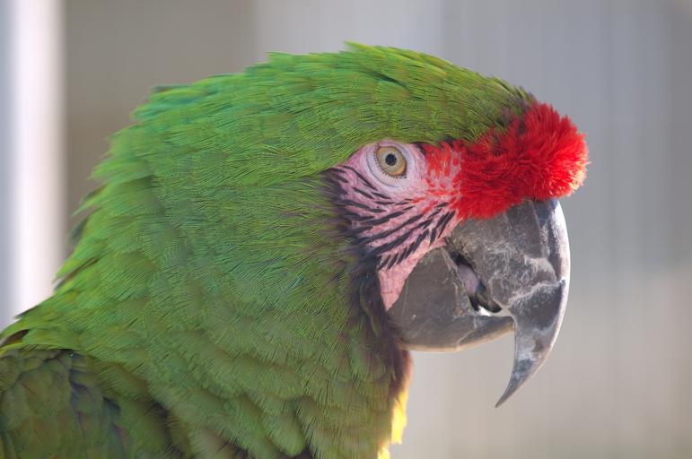 Keywords: military macaw head face beak eye colorful exotic tropical wild parrot green red cute feathers jungle bright profile portrait