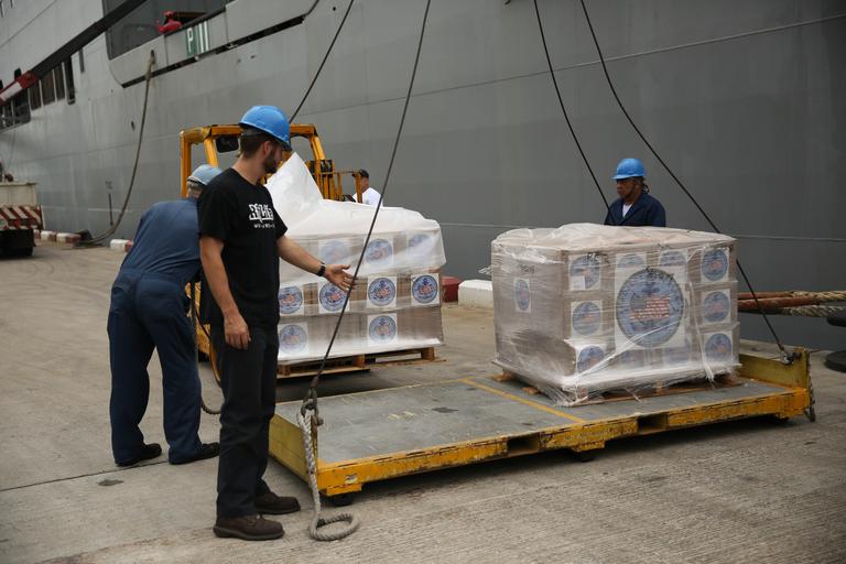 Keywords: Military Sealift Command delivers Handclasp, joy in time for holidays 161214-N-IX266-001.jpg en 161214-N-IX266-001 SRIRACHA Thailand ”Civilian mariners from USNS Washington Chambers T-AKE 11 unload Project Handclasp humanitarian items here in preparation for a community relations event at local schools here Dec 14 Handclasp pallets included complete sporting equipment toys English textbooks school materials and hygiene and medical-relate items U S Navy photo by Grady T Fontana/Released Unit Military Sealift Command Far East DVIDS Tags Project Handclasp; Pacific; MSC; Mariners; Navy; Comrel; Thailand; Outreach; chaplain; C7F; Thai; USNS Washington Chambers T-AKE- 11 ; naval ship; CIVMAR; Military Sealift Command Far East; MSCFE; CTF-73 2016-12-14 Grady Fontana https //www dvidshub net/image/3064133/military-sealift-command-delivers-handclasp-joy-time-holidays 161214-N-IX266-001 2016-12-16 09 05 SRIRACHA TH PD-USGov-Military-Navy USNS Washington Chambers T-AKE-11 Images from DoD uploaded by Fæ |