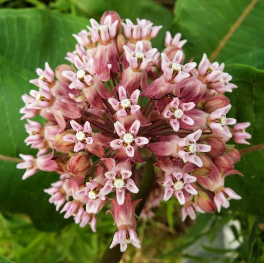 Keywords: flower cluster plant blossom flower outdoor pattern organic pattern ball of milkweed flowers, five petal pink flowers ball of milkweed flowers, five petal pink flowers