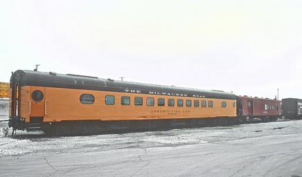 Keywords: milwaukee road milwaukeeroad vehicle train outdoor railroad locomotive MILW X5002 started life as the Cannon Falls, a coach-touralux built by the Milwaukee Shops in 1947. It was concverted to coach 554 in 1952. After several renumberings, it became the X5002 in 1971. The second car started out as one of the 8 branchline combines built by the Milwaukee shops in 1934. A number of these ended up in MOW service. Thanks to kevink for the above information. A Roger Puta Photograph MILW X5002 started life as the Cannon Falls, a coach-touralux built by the Milwaukee Shops in 1947. It was concverted to coach 554 in 1952. After several renumberings, it became the X5002 in 1971. The second car started out as one of the 8 branchline combines built by the Milwaukee shops in 1934. A number of these ended up in MOW service. Thanks to kevink for the above information. A Roger Puta Photograph MILW X5002 started life as the <i>Cannon Falls</i>, a coach-touralux built by the Milwaukee Shops in 1947. It was concverted to coach 554 in 1952. After several renumberings, it became the X5002 in 1971.