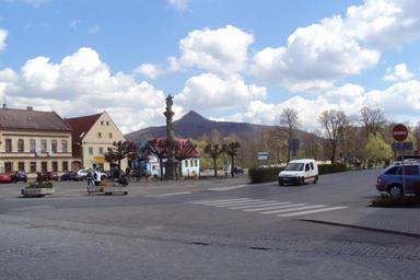 Keywords: Mimoň 007.JPG cs Náměstí 1 máje se sloupem Pany Marie v pozadí kopec Ralsko own Zákupák 2012-04-23 50 39 32 480 N 14 43 30 902 E region CZ Náměstí 1 máje Mimoň Ralsko Hill