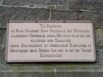 Keywords: Mindeplade kongemindet.jpg Dansk Mindepladen på Kongemindet Rytteknægten Bornholm own Photo by author 2006-08-02 Danielle Keller Danielle_dk Public Domain Plaques in Denmark Rytterknægten Monuments and memorials to Frederick VII of Denmark