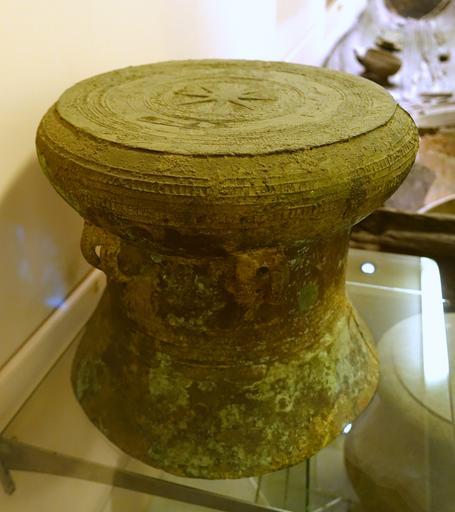 | Keywords: Miniature drum for funerary use, Dong Son culture, c. 2500-2000 years before present, bronze - National Museum of Vietnamese History - Hanoi, Vietnam - DSC05490.JPG en Exhibit in the National Museum of Vietnamese History Hanoi Vietnam Photography was permitted in the museum without restriction This artwork is old enough so that it is in the public domain 2014-08-06 02 57 29 own Daderot other versions cc-zero Uploaded with UploadWizard Dong Son bronze drums National Museum of Vietnamese History |