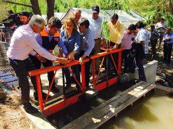 | Keywords: outdoor Monte Patria, 2 de octubre de 2015.- El Intendente de la Región de Coquimbo, Claudio Ibáñez, junto a la Secretaria Ejecutiva (s) de la Comisión Nacional de Riego, María Loreto Mery, y el Seremi, Andrés Chiang asistieron a la apertura de las compuertas del canal El Palqui- Maurat Semita. Monte Patria, 2 de octubre de 2015.- El Intendente de la Región de Coquimbo, Claudio Ibáñez, junto a la Secretaria Ejecutiva (s) de la Comisión Nacional de Riego, María Loreto Mery, y el Seremi, Andrés Chiang asistieron a la apertura de las compuertas del canal El Palqui- Maurat Semita. |
