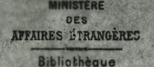 Keywords: hardware = epson expression 100 hardwareepsonexpression100 software = epson scan v2.20a an softwareepsonscanv220aan text monochrome blackandwhite black and white Library, Ministry of Foreign Affairs. This stamp is from the library of the Ministry of Foreign Affairs, which is housed in the historic Quai d’Orsay building in Paris. The ministry has been at this location since 1853, and still maintains an archive of historical materials, including materials related to artworks looted during the Nazi occupation. This book stamp is from a book looted by the Nazis and sorted by Colonel Seymour Pomrenze, one of “the Monuments Men,” at the Offenbach Archival Depot. There are two scrapbooks of archival markings from the books sorted at the Offenbach Depot in the Seymour Pomrenze Collection held by the American Jewish Historical Society (Call number P-933) There is a finding aid for the collection here The digitized scrapbooks are available here and here. For more information on this project check the Center’s blog: 16thstreet.tumblr.com/tagged/Offenbach-Depot Dr. Mitch Fraas, Acting Director of the Digital Humanities Forum at the University of Pennsylvania Libraries' Special Collections Center is working on a similar project for the German book stamps based on NARA microfilm of the volumes the American Jewish Historical Society currently holds. See viewshare.org/views/mfraas/offenbach-bookplates/ The Center for Jewish History would like to acknowledge the following: The American Jewish Historical Society, who graciously allowed the use of their archival materials and digital content; Mitch Fraas, Acting Director of the Digital Humanities Forum at the University of Pennsylvania Libraries' Special Collections Center, for his data and technical assistance in this project; David Rosenberg, Senior Manager for Communications, and Melanie Meyers, Senior Reference Services Librarian for Special Collections, for managing and creating the digital map; as well as Reference Services Librarian Zachary Loeb and Reference Services Assistant Ilya Slavutskiy for their work on translating and mapping. For copyright information, click here Library, Ministry of Foreign Affairs. This stamp is from the library of the Ministry of Foreign Affairs, which is housed in the historic Quai d’Orsay building in Paris. The ministry has been at this location since 1853, and still maintains an archive of historical materials, including materials related to artworks looted during the Nazi occupation. This book stamp is from a book looted by the Nazis and sorted by Colonel Seymour Pomrenze, one of “the Monuments Men,” at the Offenbach Archival Depot. There are two scrapbooks of archival markings from the books sorted at the Offenbach Depot in the Seymour Pomrenze Collection held by the American Jewish Historical Society (Call number P-933) There is a finding aid for the collection here The digitized scrapbooks are available here and here. For more information on this project check the Center’s blog: 16thstreet.tumblr.com/tagged/Offenbach-Depot Dr. Mitch Fraas, Acting Director of the Digital Humanities Forum at the University of Pennsylvania Libraries' Special Collections Center is working on a similar project for the German book stamps based on NARA microfilm of the volumes the American Jewish Historical Society currently holds. See viewshare.org/views/mfraas/offenbach-bookplates/ The Center for Jewish History would like to acknowledge the following: The American Jewish Historical Society, who graciously allowed the use of their archival materials and digital content; Mitch Fraas, Acting Director of the Digital Humanities Forum at the University of Pennsylvania Libraries' Special Collections Center, for his data and technical assistance in this project; David Rosenberg, Senior Manager for Communications, and Melanie Meyers, Senior Reference Services Librarian for Special Collections, for managing and creating the digital map; as well as Reference Services Librarian Zachary Loeb and Reference Services Assistant Ilya Slavutskiy for their work on translating and mapping. For copyright information, click here