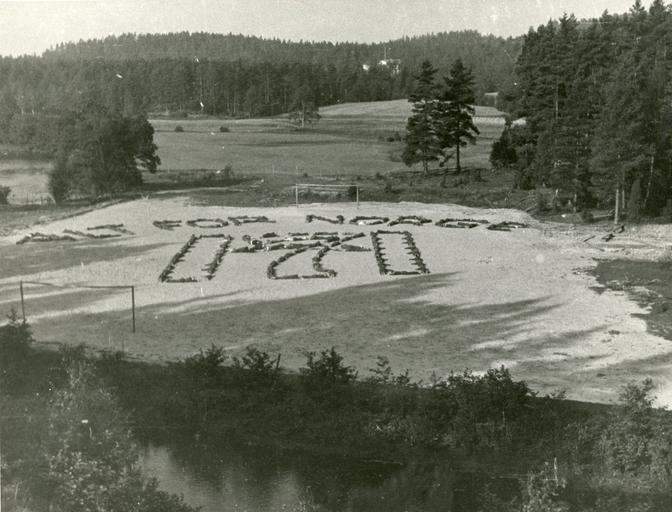 Keywords: vårslipp vårslipp 2012 vårslipp2012 minnehøytideligheter andre verdenskrig andreverdenskrig 2. verdenskrig 2verdenskrig nordmenn i sverige under krigen nordmennisverigeunderkrigen outdoor monochrome ”Nordmenn i Sverige hilser Kong Haakon. Dette bildet er tatt i den norske flyktningeleiren på Øreryd i Sverige. 173 mann har lagt seg ned på idrettsplassen og dannet bokstavene ”Alt for Norge” og H7 som en hyllest til Hans Majestet for hans arbeide for og loyalitet til Norge. 70-årsdagen 3. august 1942.” RA/PA-1209/Uc/66/3/L 8446 ”Nordmenn i Sverige hilser Kong Haakon. Dette bildet er tatt i den norske flyktningeleiren på Øreryd i Sverige. 173 mann har lagt seg ned på idrettsplassen og dannet bokstavene ”Alt for Norge” og H7 som en hyllest til Hans Majestet for hans arbeide for og loyalitet til Norge. 70-årsdagen 3. august 1942.” RA/PA-1209/Uc/66/3/L 8446 |
