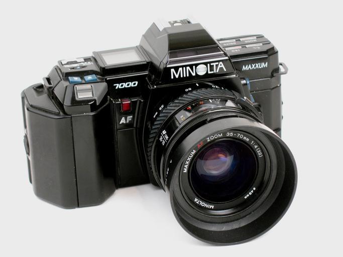 | Keywords: Minolta Maxxum 7000 with 35-70mm zoom lens.jpg en The Minolta Maxxum 7000 was an autofocusing 35mm SLR camera introduced in early 1985 It also had a power winder that advanced film automatically after each shot The camera with a 55mm lens sold for 500 Shown with the optional 35-70mm zoom lens Review in https //books google com/books id pAAAAAAAMBAJ pg PA128 Popular Science April 1985 page 128 Photo taken with a Canon PowerShot A630 camera Own 2008-05-31 Michael Holley Swtpc6800 <gallery> File Minolta Maxxum 7000 with 70-210 mm zoom lens jpg File Minolta Maxxum 7000 without lens jpg File Minolta Maxxum 7000 35mm SLR back open jpg File Minolta Maxxum 7000 35mm SLR back jpg </gallery> Minolta 7000 Photographs by User Swtpc6800 |