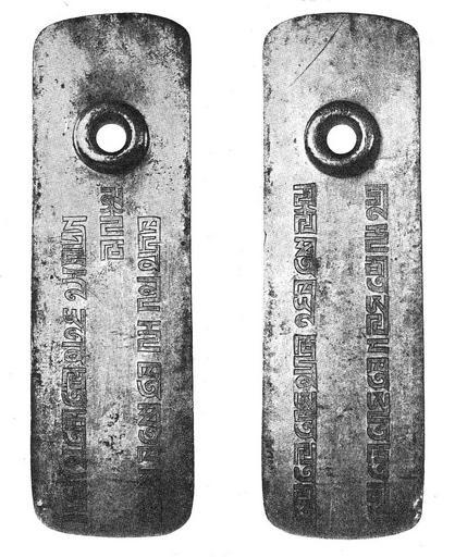 | Keywords: Minusinskaya paiza.jpg пайцза айдена в инусинском ок уге Енисейской губе нии Российской импе ии в 1845 или 1846 году Се еб о; золочёная надпись по-монгольски квад атным письмом «Силою вечного тенг и Имя импе ато а да будет свято Тот кто не будет относиться с благоговением сове шит п оступок и ум ёт» Пе евод Поппе Квад атная письменность Л Издательство А СССР 1941 Сми нов Я И Восточное се еб о Атлас д евней се еб яной и золотой посуды восточного п оисхождения найденной п еимущественно в п еделах Российской импе ии Издание Имп А хеологической Комиссии ко дню 50-летия её деятельности СПб 2-го фев аля 1909 Author II половина XIX в начало XX в Paiza of the Yuan Dynasty Paiza with Phagspa inscription Decorative arts in the Hermitage Museum History of Krasnoyarsk Krai PD-old |