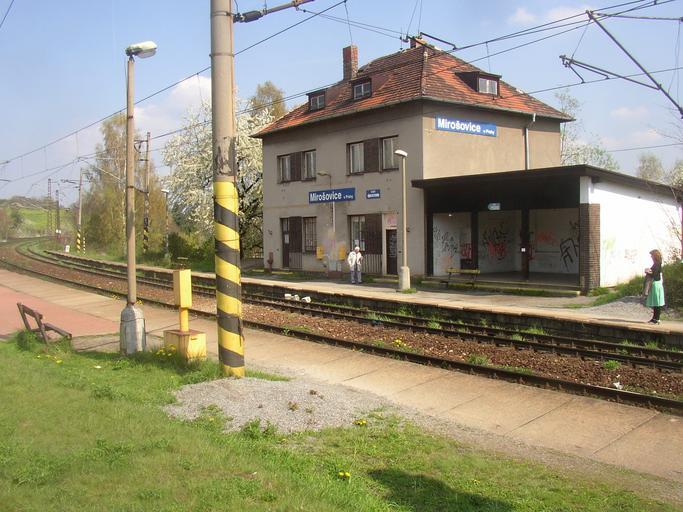 Keywords: Mirosovice PH CZ railway station 012.jpg Mirošovice okres Praha východ Železniční stanice Mirošovice u Prahy na hlavní trati z Prahy přes Benešov a Tábor do Českých Budějovic traťový úsek 221 tarifní vzdálenost 32 km z Prahy-Hlavního nádraží tarifní pásmo 2 Pražské integrované dopravy Pohled přibližně s až ssv směrem z nástupiště směr Benešov na nástupiště směr Praha Mirošovice Prague-East District Czech Republic Mirošovice u Prahy railway station on main line Prague-Benešov-Tábor-České Budějovice A view towards N-NNE with southbound platform in the foreground Own 2008-04 User Miaow Miaow 49 54 36 5 N 14 43 18 3 E region CZ Mirošovice u Prahy train station |