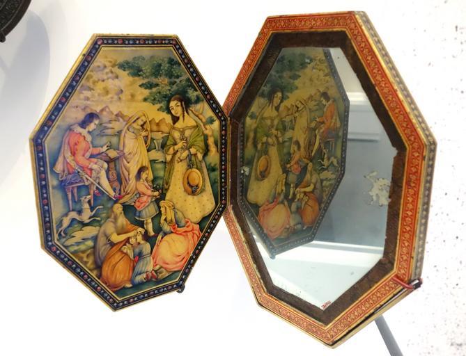 | Keywords: Mirror and Case, Lutf 'Ali Suratgar (1802-1871), Shiraz, Iran, 19th century, ink, watercolor, metallic pigment and gold on papier-mache, glass - Brooklyn Museum - Brooklyn, NY - DSC08453.JPG en Exhibit in the Brooklyn Museum - Brooklyn New York USA This artwork is in the public domain because the artist died more than 70 years ago Photography was permitted in the museum without restriction 2013-10-30 11 47 38 own Daderot other versions cc-zero Uploaded with UploadWizard Decorative arts in the Brooklyn Museum Lutf 'Ali Suratgar |