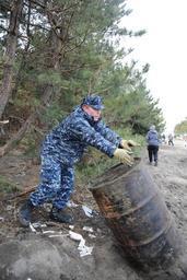 Keywords: Misawa Fishing Port Clean-up DVIDS379586.jpg en Scott Kopelwitz chief mineman from New Philadelphia Ohio pushes a barrel out of the tree line at Misawa Fishing Port Service members civilian employees and family members from Misawa Air Base joined with Misawa City residents to clean up the port following a 9 0-magnitude earthquake that caused a devastating tsunami along Japan's eastern coast 2011-03-19 Petty Officer 1st Class Matthew Bradley https //www dvidshub net/image/379586 110319-N-+++++-023 2011-03-19 08 01 MISAWA AOMORI JP PD-USGov-Military-Navy Misawa Air Base Images from DoD uploaded by Fæ |