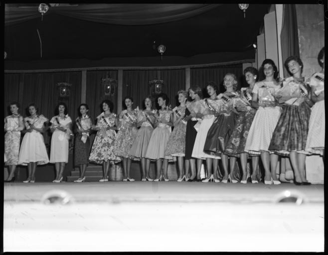 Keywords: blackandwhite monochrome team sport sport indoor black and white Miss Vancouver Anna Finlayson named Miss PNE 1959 and all of the other contestants VPL 60540 Date: August 1959 Photographer/Studio: Province Newspaper Sedawie, Gordon F. Content: Anna Finlayson is 7th from the right. Beauty contests Person: Finlayson, Anna More information on our historical photograph collection: www.vpl.ca/historicalphotos Miss Vancouver Anna Finlayson named Miss PNE 1959 and all of the other contestants VPL 60540 Date: August 1959 Photographer/Studio: Province Newspaper Sedawie, Gordon F. Content: Anna Finlayson is 7th from the right. Beauty contests Person: Finlayson, Anna More information on our historical photograph collection: www.vpl.ca/historicalphotos |